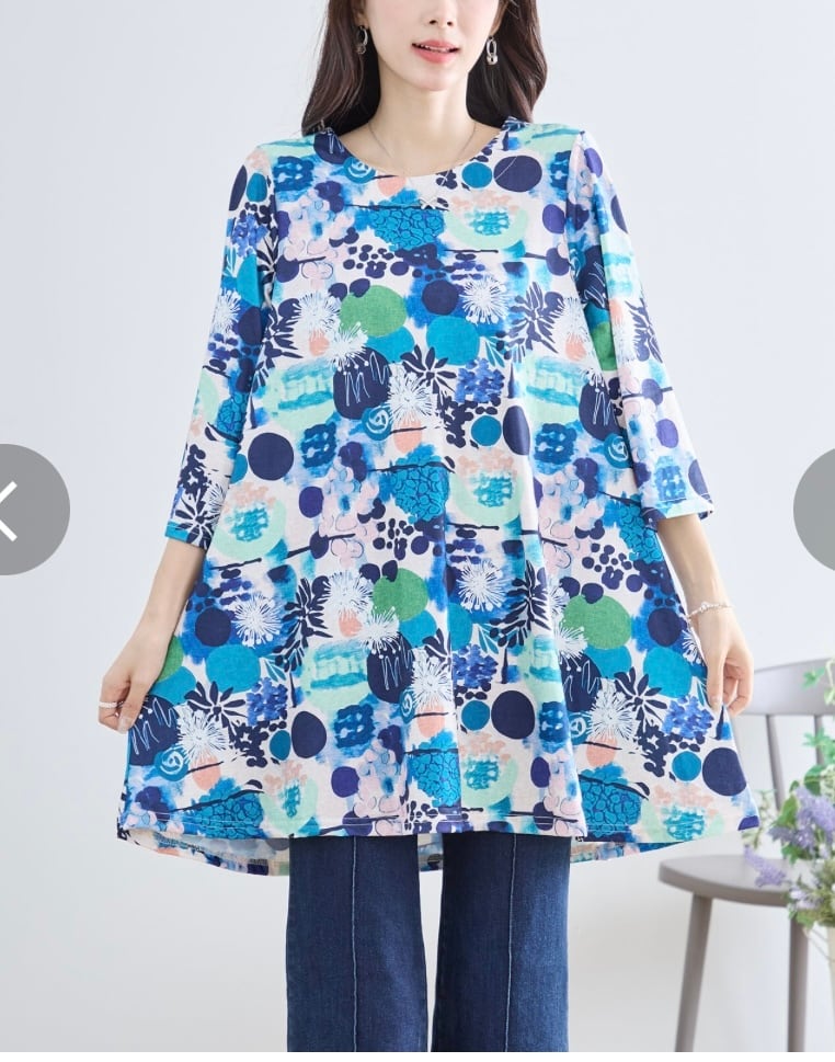水彩タッチアート柄チュニック