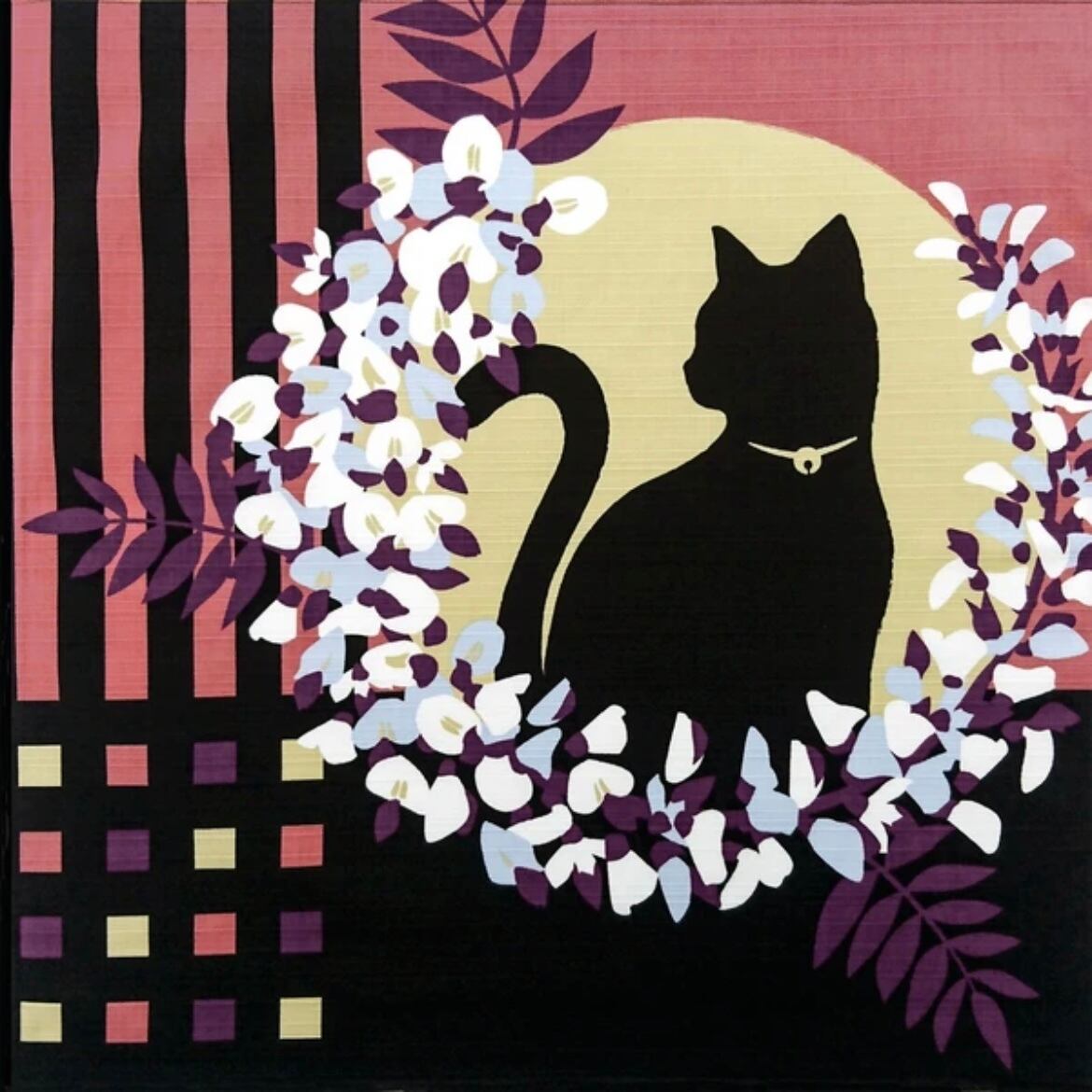 モダンな猫柄とお月見柄、風呂敷ですが、絵画のような壁飾りにも素敵です。