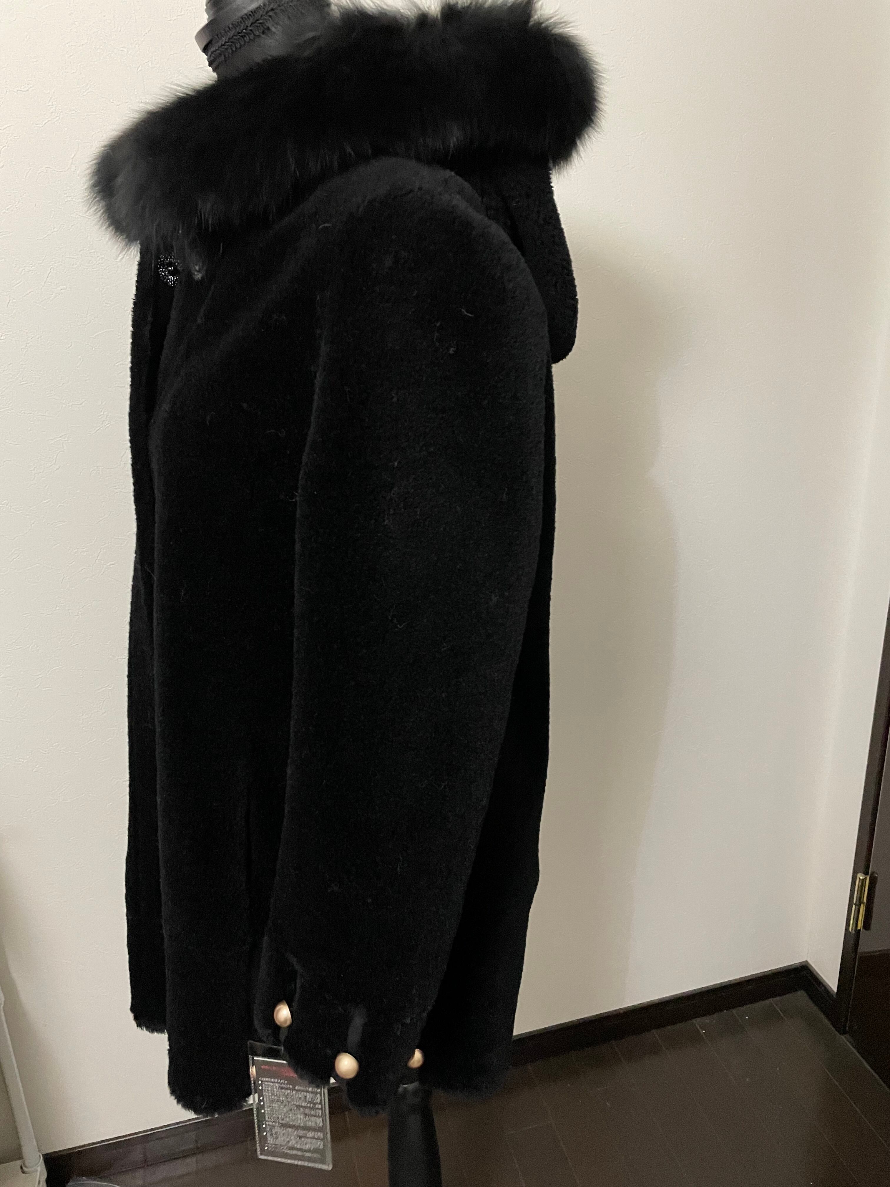 もこもこで肌触りが気持ちいいラムウールを表面に使った、高級感あふれるコートです。