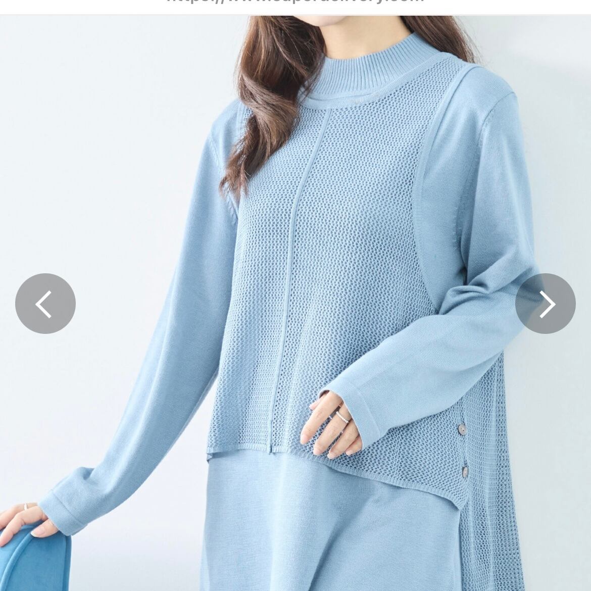 ・透かし編みのニットベストとモックネックニットのセットアイテム。