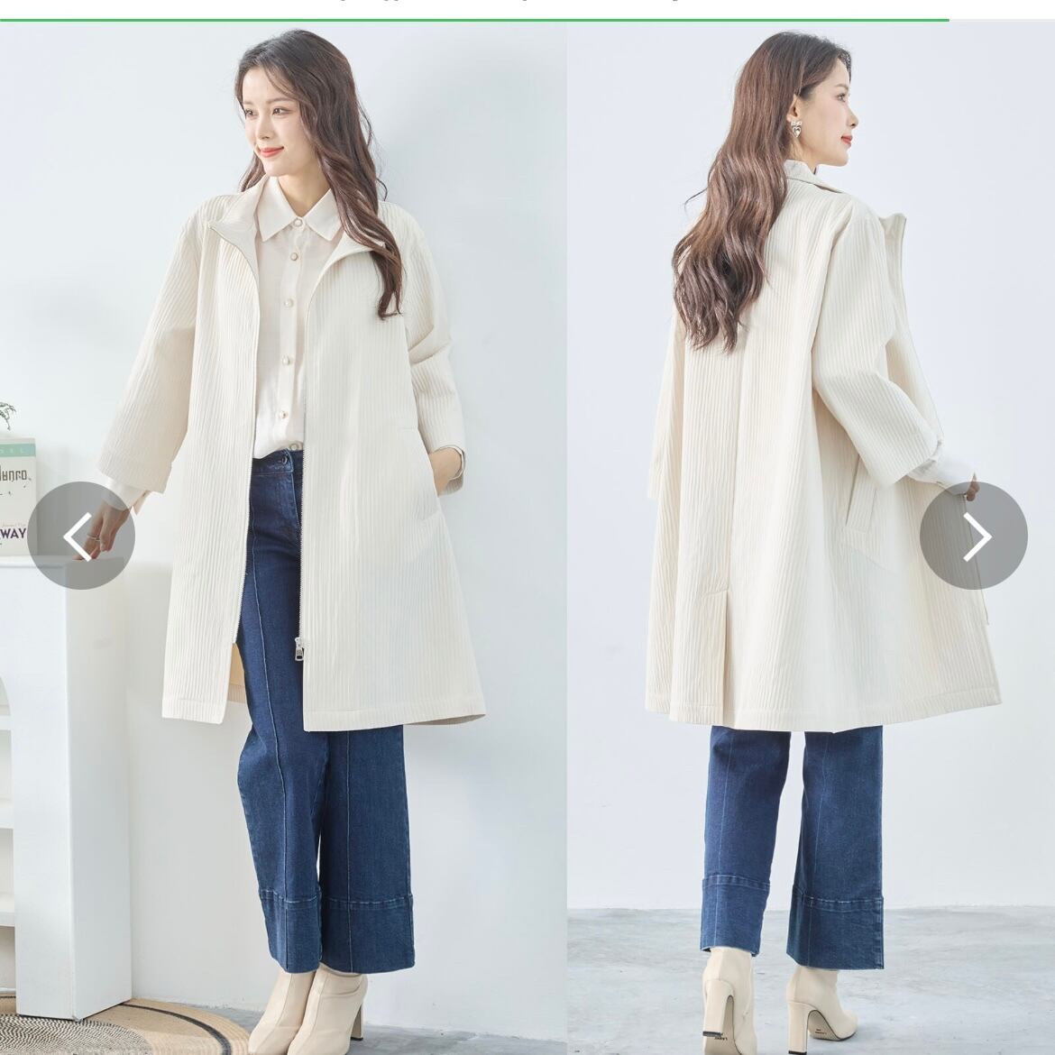 個性的なプリーツ調デザインが目を引くロングファスナージャケット。シンプルながらもエレガントな印象を与える一着です。首元まで閉めることができるファスナー仕様で、スタイリングの幅が広がります。大きめサイズ展開なので、様々な体型の方にもおすすめです。