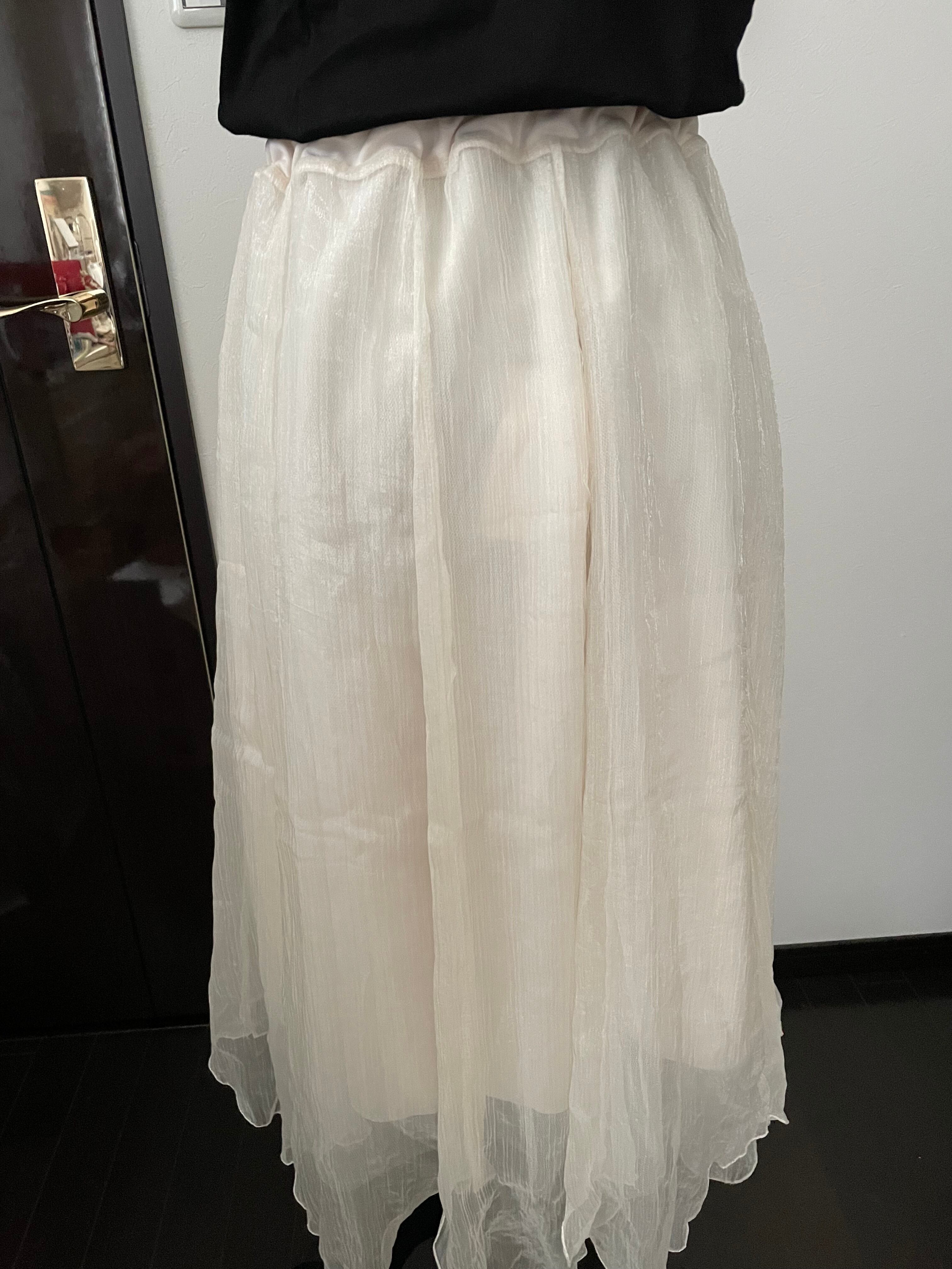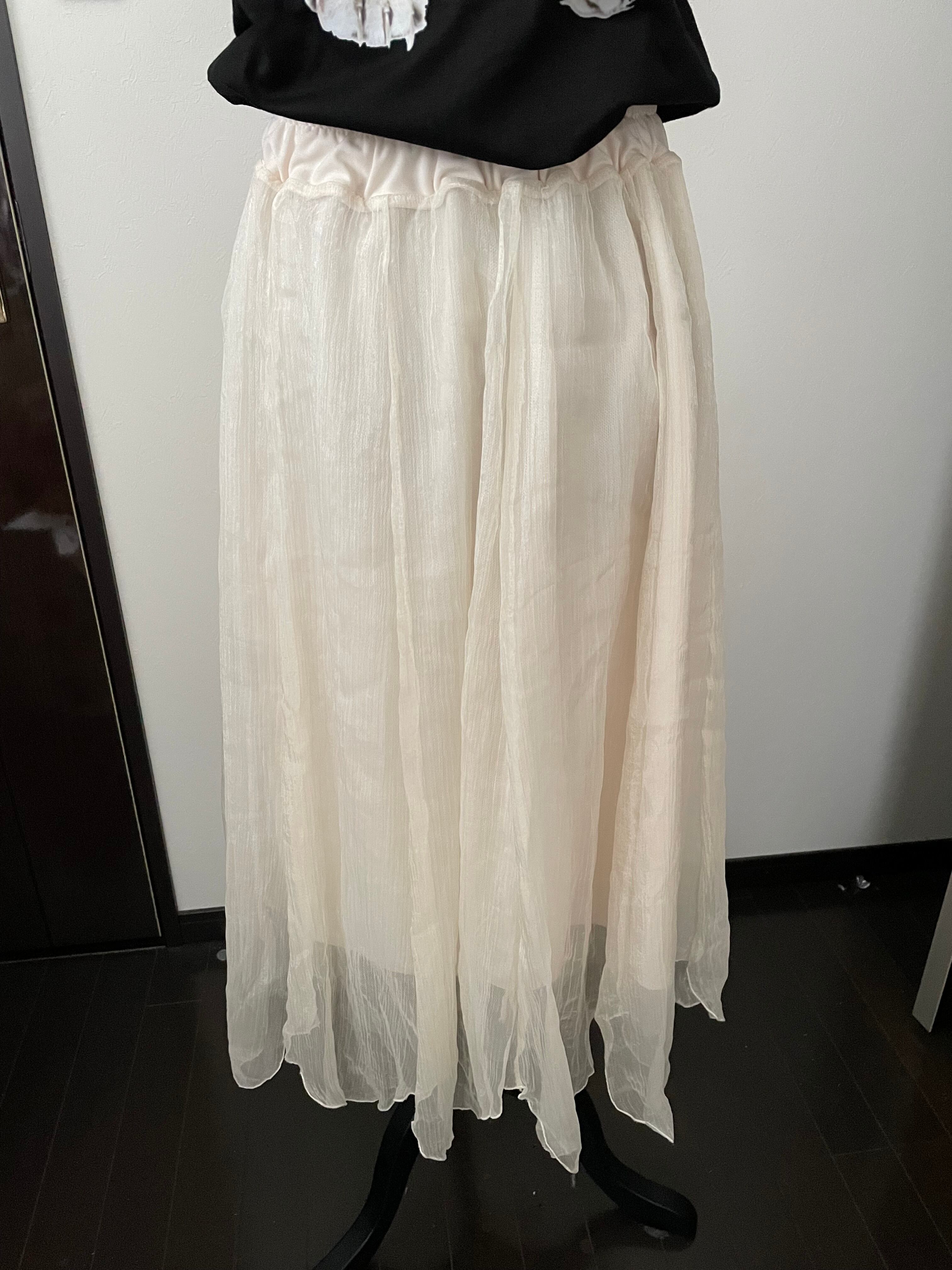チュールスカート ロングスカートは、どんなトップスとも相性抜群のアイテム。フェミニンで上品な印象を与えながらも、カジュアルなスタイリングも楽しめる優れものです。軽やかな生地感で、歩くたびに女性らしい揺れを演出してくれます。