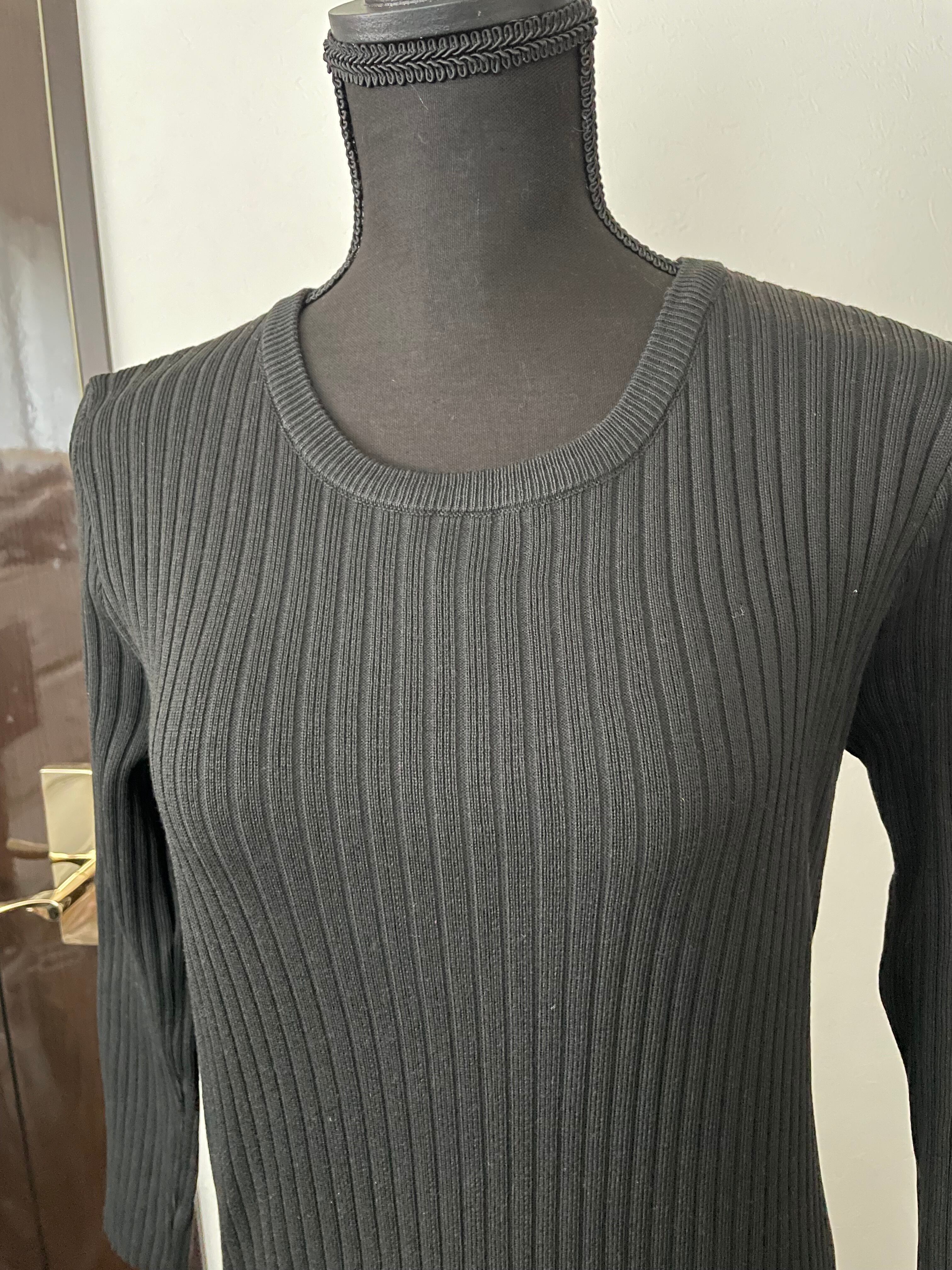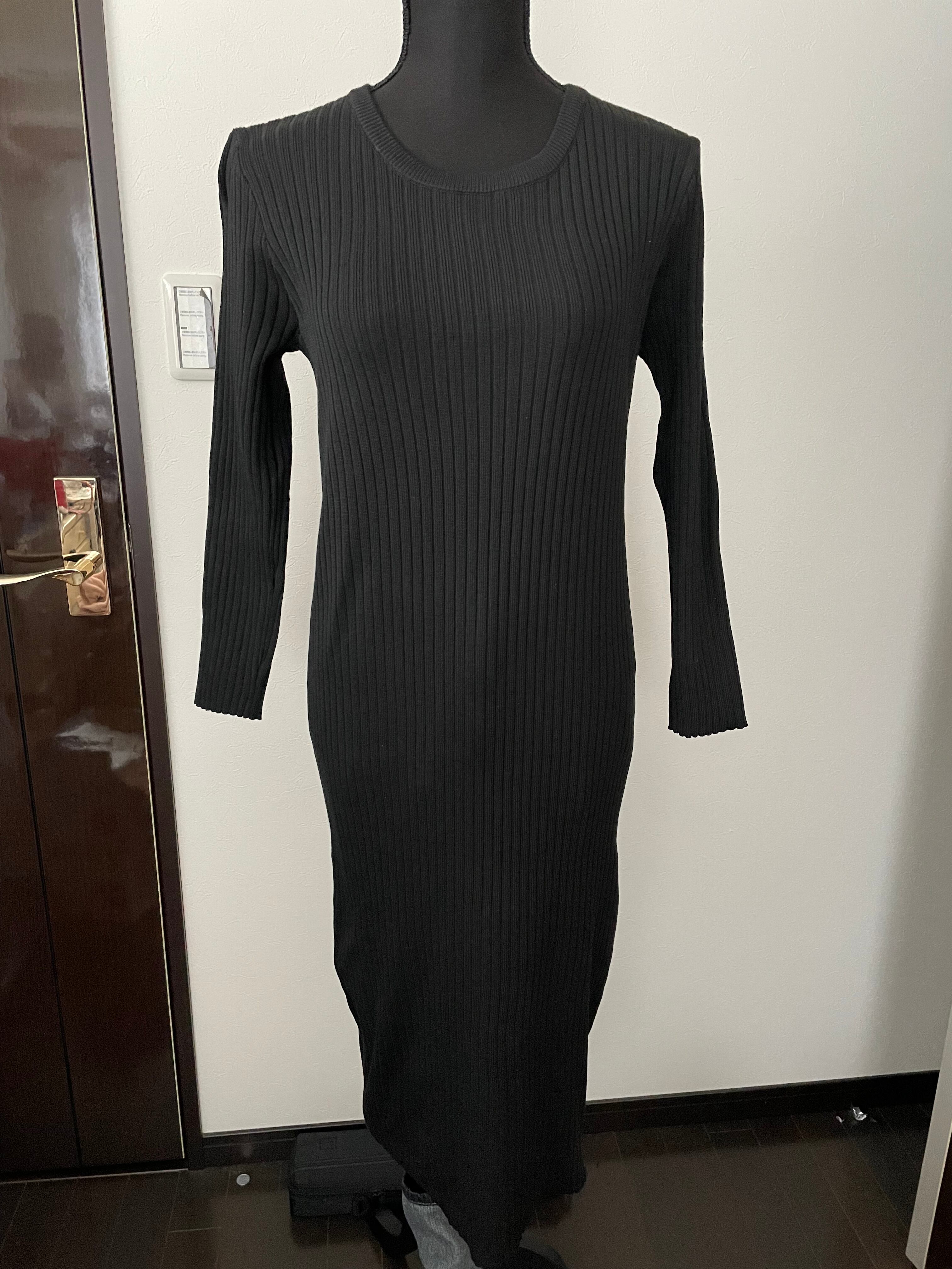 カラーブラック ロング丈のリブニットワンピース。 シンプルなデザインです。 サイズ・ L:B:約96cm 肩幅:約37cm 袖丈:約54cm 着丈:約113cm