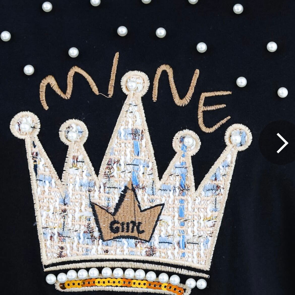 ・ビジューが施されたお洒落な刺?王冠プリントTシャツ。