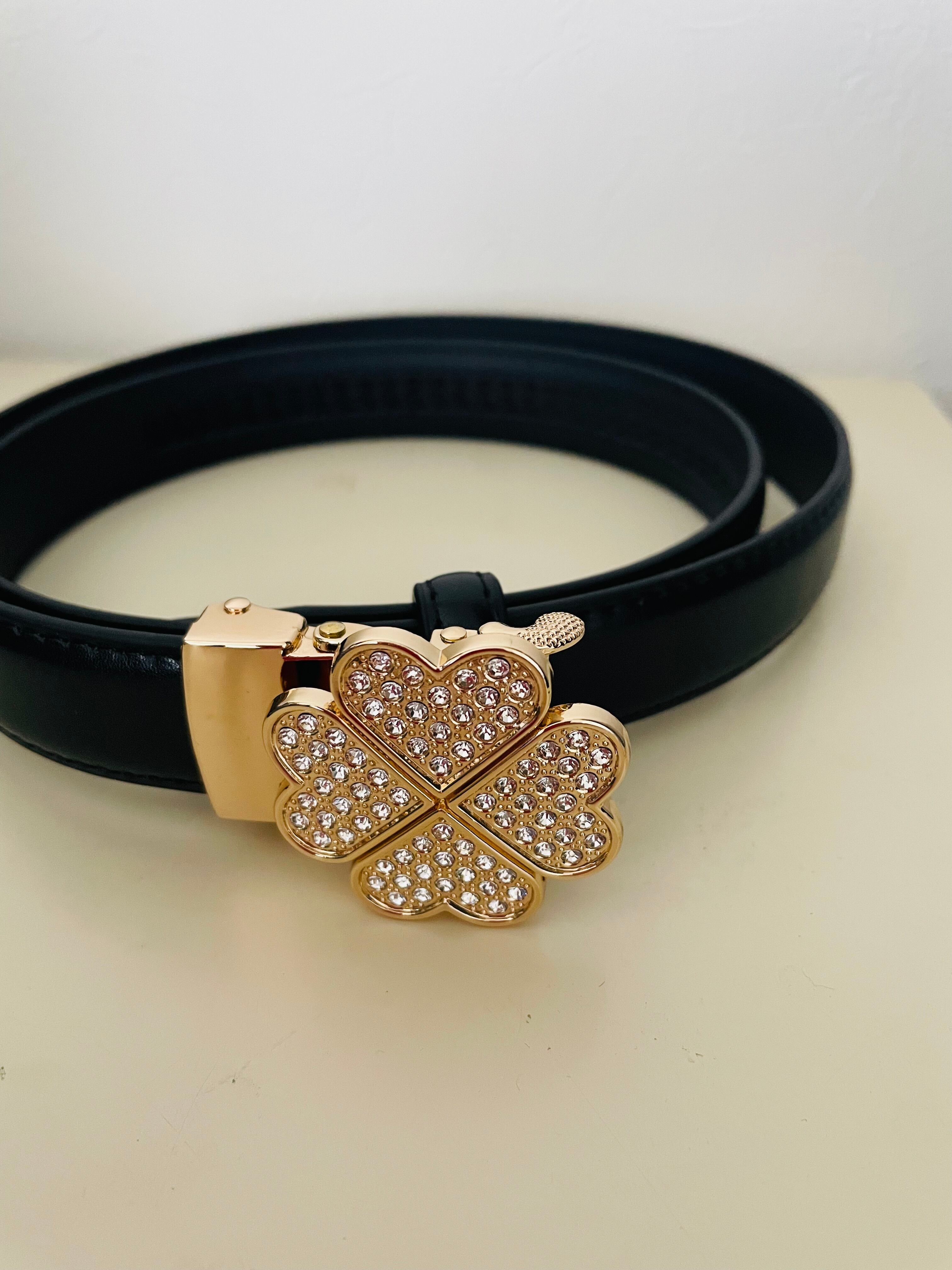 フラワーモチーフバックルベルト牛革ラインストーン | ranran2233