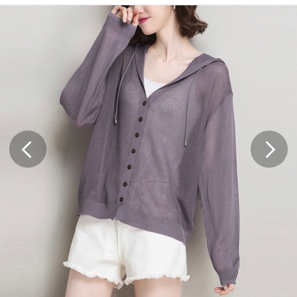 フード付き ニットカーディガン レディース 夏服 無地 ニットトップス 紫外線対策 薄手 透け感 羽織 大人 韓国