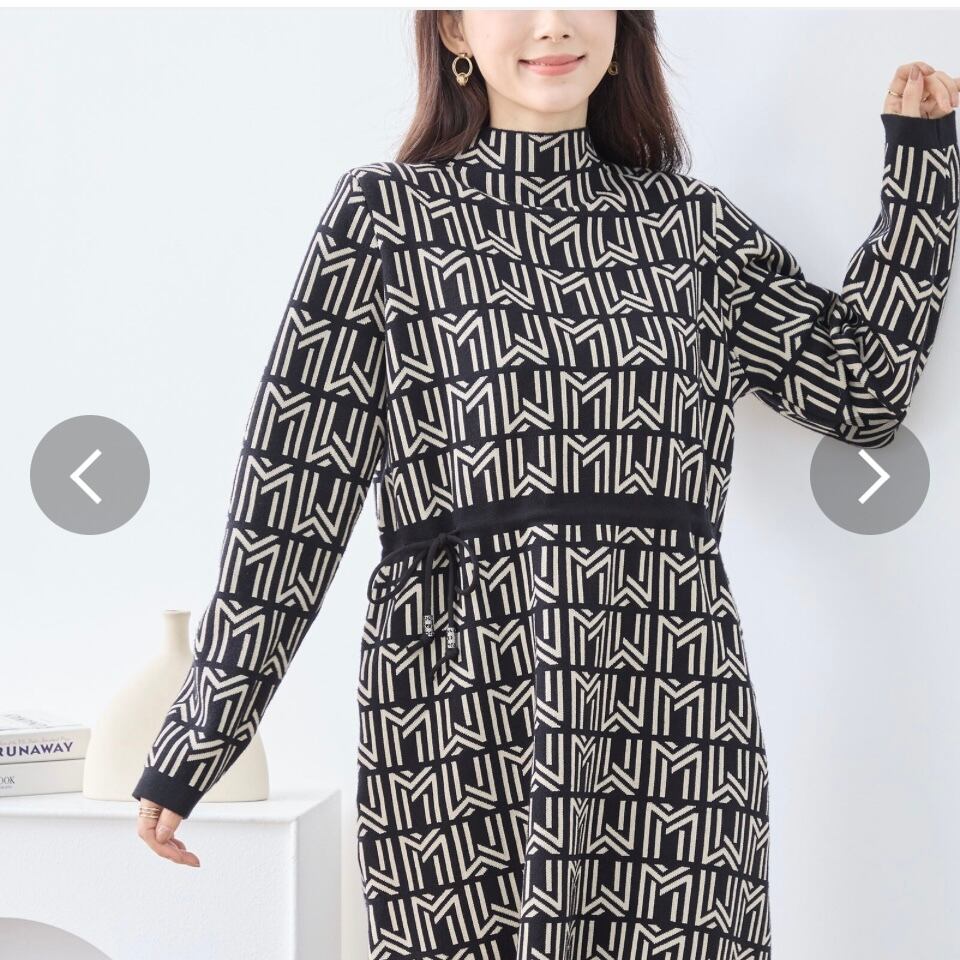 TRUBE 【M〜L】ジオメトリック柄ニットワンピースは、モダンなジオメトリック柄が特徴のスタイリッシュなアイテムです。このデザインは、トレンド感を演出しながら、エレガントさも兼ね備えています。柔らかいニット素材が体にフィットし、快適な着心地を提供します。シンプルなアクセサリーと合わせることで、様々なシーンにマッチします。