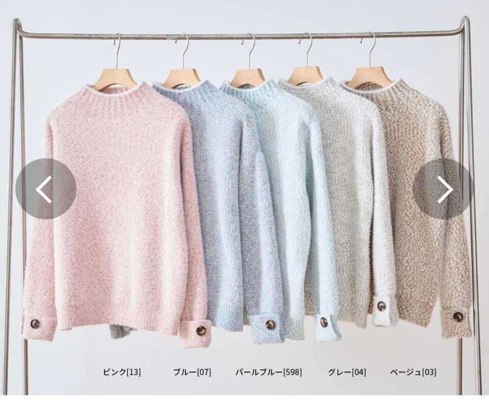柔らかな触り心地と絶妙なカラーミックスが魅力のニットプルオーバー。モックネックで首元を優しく包み込み、寒い季節にぴったりの暖かさを提供します。袖口のボタンディテールがシンプルなデザインにアクセントを加え、カジュアルにもフェミニンにも着こなし可能。パンツにもスカートにも合わせやすい万能アイテムです。
