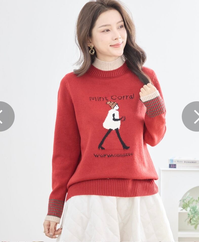 【M〜L】ウォーキングガール柄配色ニットプルオーバー